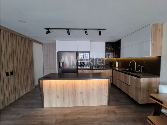 Apartamento en unidad cerrada ubicado en el sector Loma de los Mesa en Envigado. Cuenta con 98.16m² construidos y área privada de 90.47m², diseño moderno y distribución funcional. Sala-comedor con acceso a balcón, cocina integral abierta con isla y torre de hornos, zona de ropas independiente y estudio.
